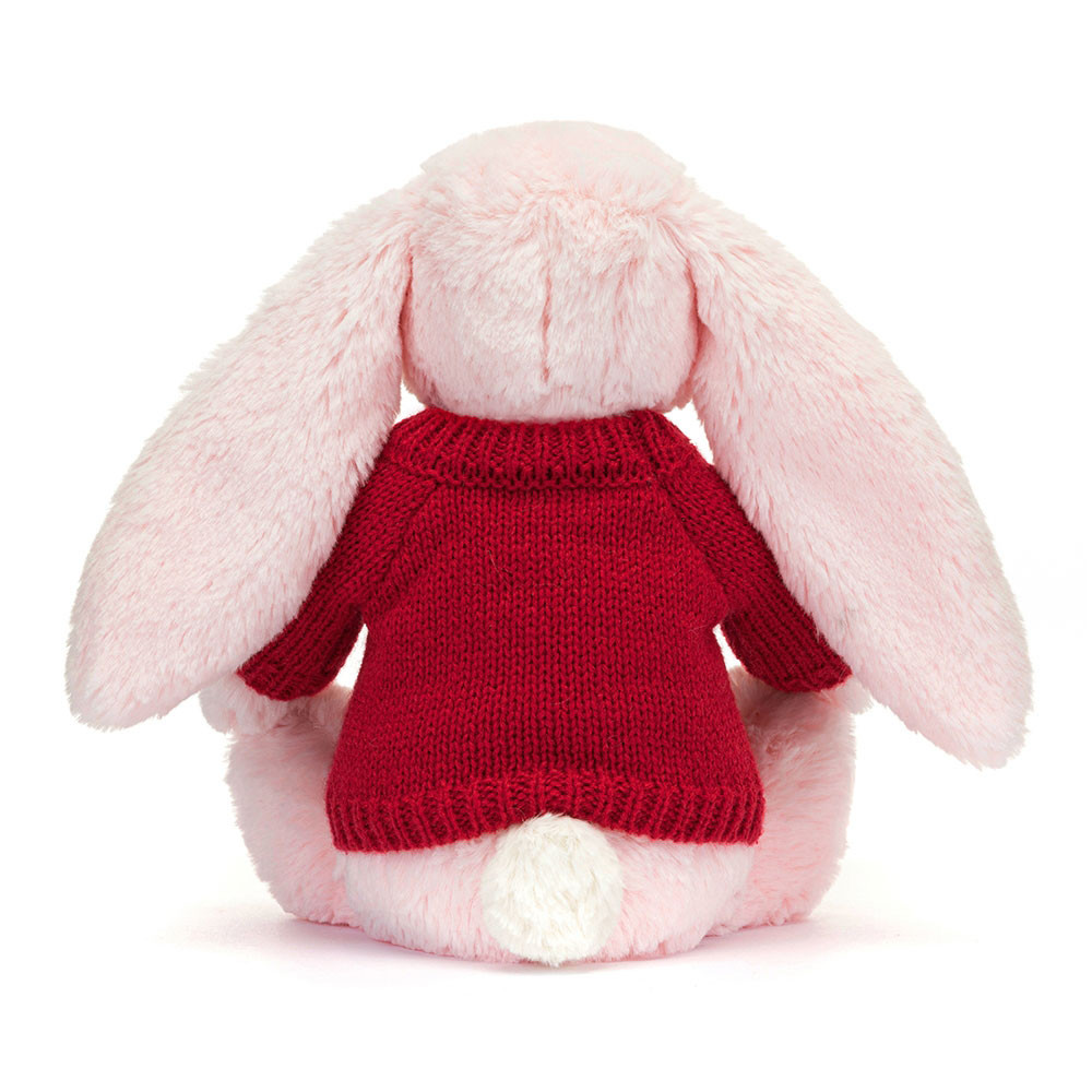 Bashful Pink Bunny with Personalized Red Jumper